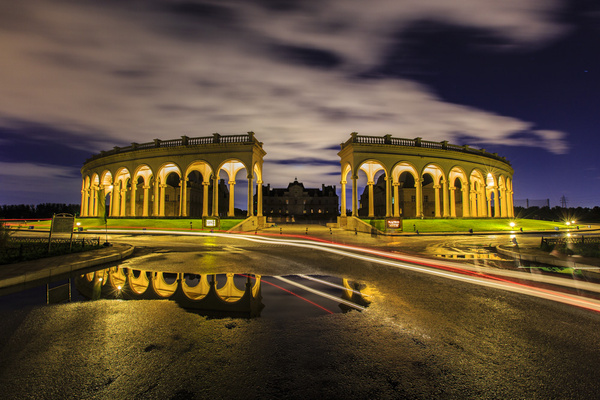 北京拉斐特城堡在设计上博采法国麦松·拉斐特城堡、凡尔塞宫、子爵堡、卢浮宫等建筑艺术精华,以古希腊罗马柱为构图要素,建筑外形气势磅礴,装饰富丽堂煌,是古典和人文主义的完美结合